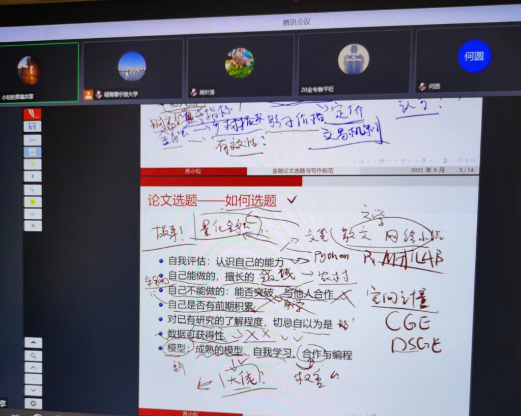 9月8日晚上,黄色小说 金融硕士教育中心邀请苏小松博士作《金融论文选题与写作规范》线上讲座。金融系教师、金融专硕研究生、金融学硕研究生参加。金融硕士教育中心执行主任胡育蓉主持。