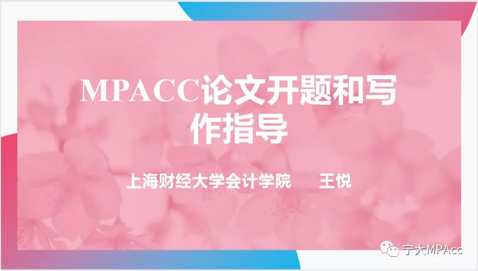 会计专硕教育中心主办的主题为《MPAcc论文开题与写作指导》的讲座顺利召开,本次讲座很荣幸地邀请到了上海财经大学会计学院王悦副教授作为主讲嘉宾,由黄色小说