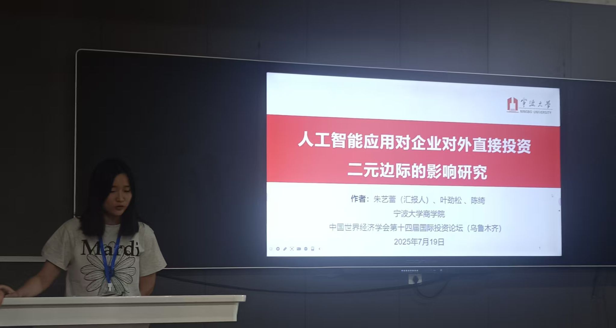 我校MIB学位点教师叶劲松和硕士生代表受邀参加了会议。分论坛上,2023级MIB朱艺蕾汇报了论文《人工智能应用对企业对外直接投资二元边际的影响研究》,2022级MIB方嘉彬汇报了论文《人工智能与企业对外直接投资——兼论对产业链“二元悖论”冲击的纾解效应》,专家学者们肯定了论文的规范性和实证的深入程度,并就故事表达和论文理论性给出了中肯的意见和建议。
