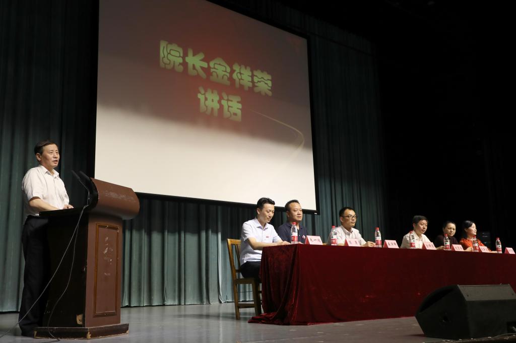 院长金祥荣教授致辞,金院长对新生的到来致以热烈的欢迎,对校外兼职导师的参与表达了诚挚的感谢,并围绕为什么要读好研究生及怎样读好研究生做了深度发言。