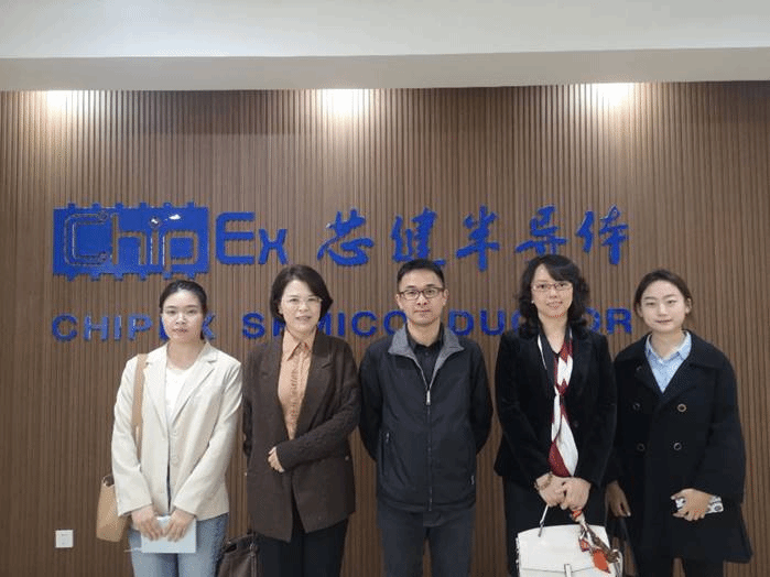 2021年11月5号,我校国际商务专业硕士点杨丽华老师、董楠楠老师和两名研究生与甬商公共服务平台以及宁波电视台的工作人员共同走访考察了“专精特新”小巨人之一的宁波芯健半导体有限公司。芯健公司主要从事集成电路圆片级先进封装测试服务,是目前浙江省唯一一家从事芯片新进封装测试服务的高新技术企业。