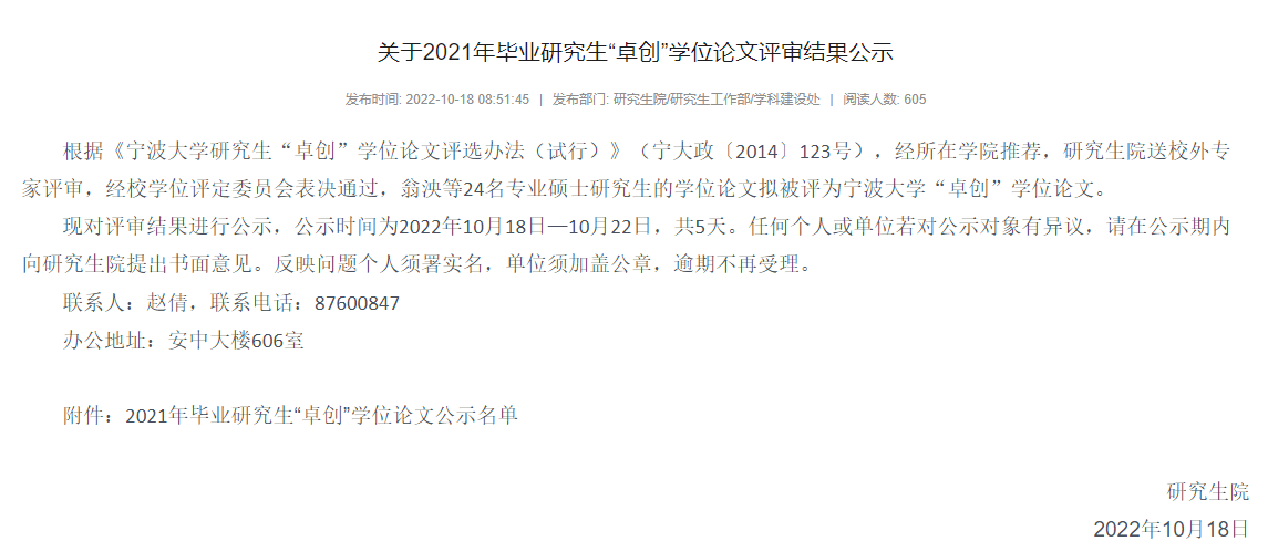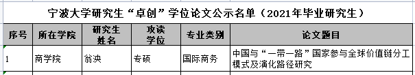 日前,黄色小说 研究生院公示了“2021年毕业研究生‘卓创’学位论文评审结果”,国商专业翁泱同学获此殊荣。