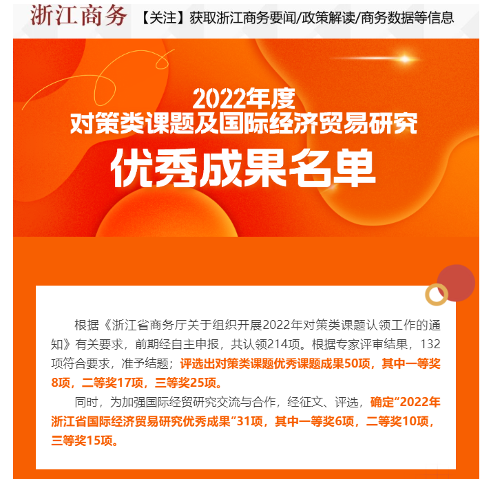 我校国际商务专硕学生获评2022年浙江省国际经济贸易研究优秀成果一等奖