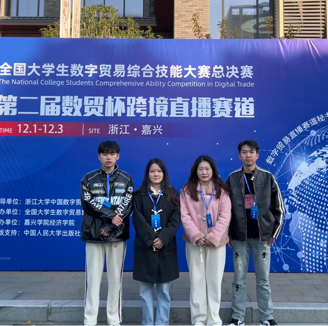 近年来,全球数字贸易蓬勃发展,成为国际贸易的重要组成部分。中国积极对接高标准国际经贸规则,促进数字贸易的创新发展,不断推动本国综合实力的提高。2023年12月2日至12月3日,由浙江大学中国数字贸易研究院和嘉兴大学经济学院联合承办的第二届全国大学生数字贸易综合技能大赛直播赛道全国总决赛落下帷幕。在本次比赛中,我校MIB专业共有四支队伍入围全国总决赛。