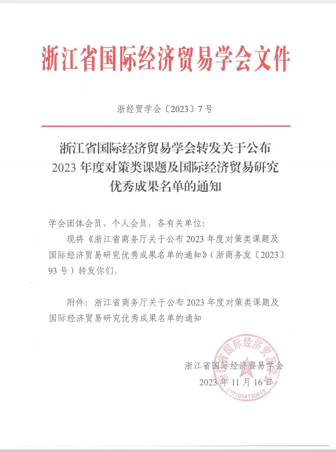 12月8日晚,我校MIB学位点学科带头人、浙江省国际经济贸易学会副会长钟昌标教授,我校MIB教育中心执行主任、浙江省国际经济贸易学会常务理事叶劲松副教授,参加了2023年度学会理事会。