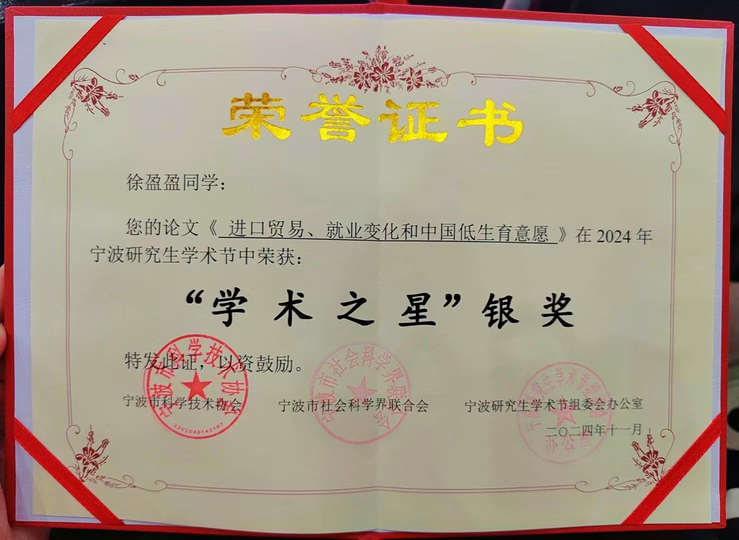 获奖 | 我校MIB新生在2024年宁波研究生学术节中荣获银奖