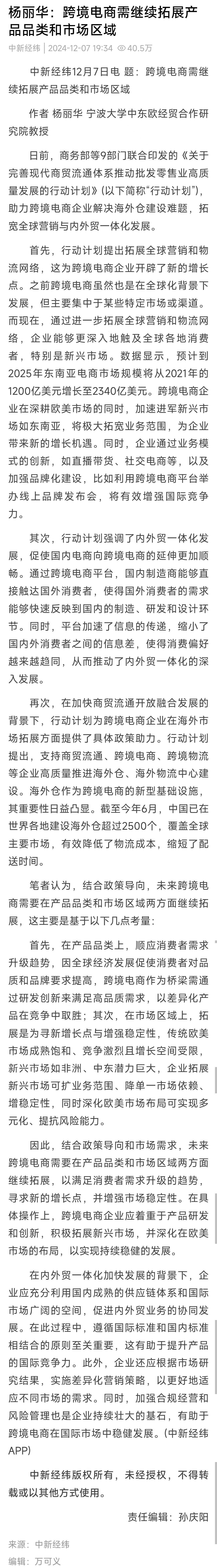 媒体发声 | 我校MIB学位点负责人杨丽华教授在《中新经纬》就发展跨境电商发表个人观点