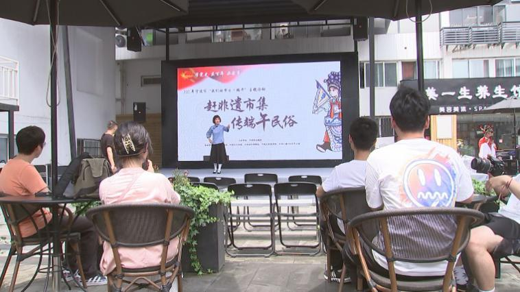非遗市集和包粽子体验结束后,大家一并前往云创广场观看戏曲表演,聆听一段段红色历史故事。