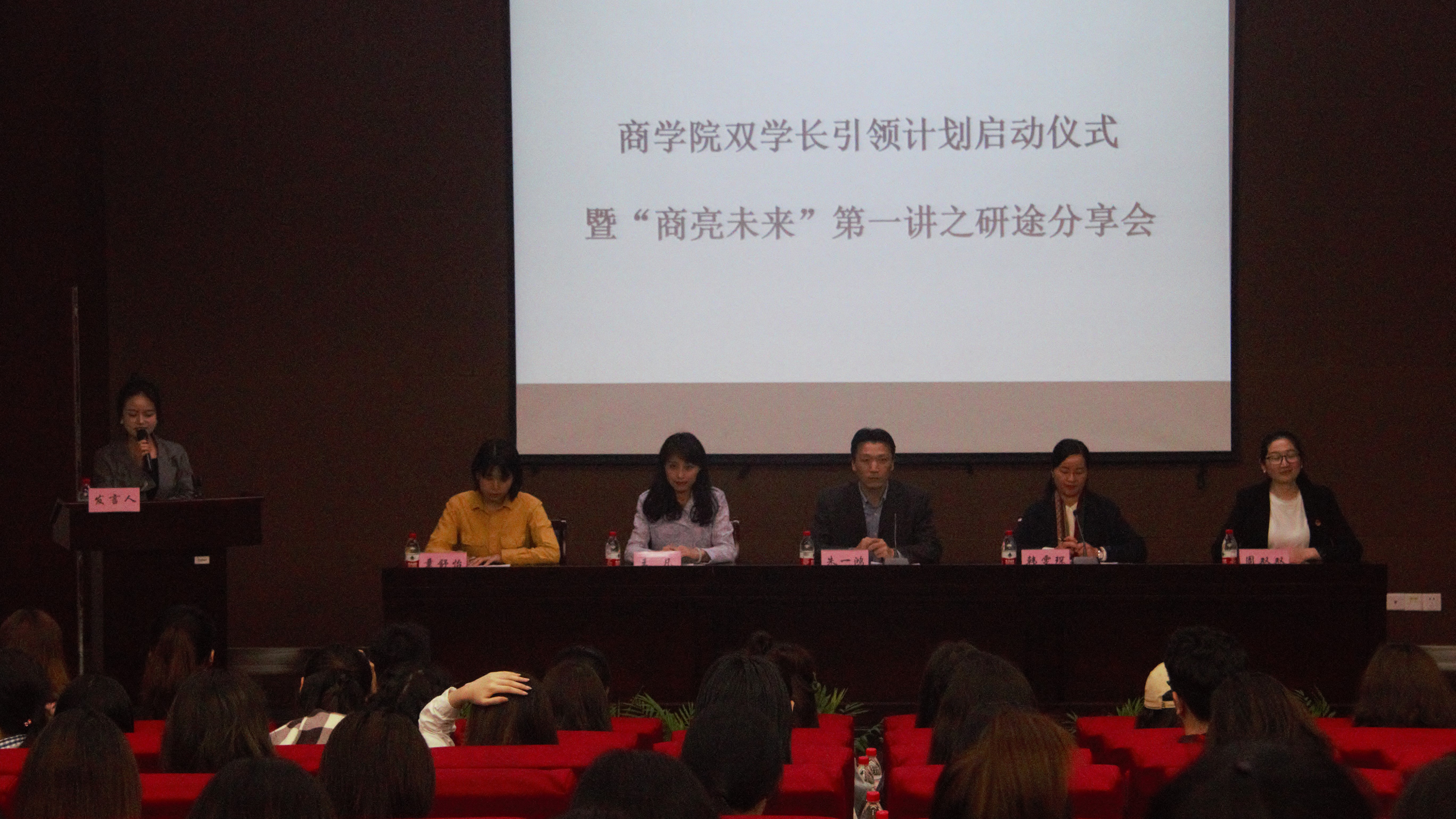 4月26日下午,黄色小说 双学长引领计划启动仪式暨“商亮未来”第一讲之研途分享会在高研院报告厅顺利举行。黄色小说 党委副书记韩雯琛、协理副院长朱一鸿、负责考研工作辅导员王凡、分团委副书记周双双、研究生辅导员章舒怡出席了本次活动,同时参加本次活动的还有100余名考研同学和40余名研究生学导。