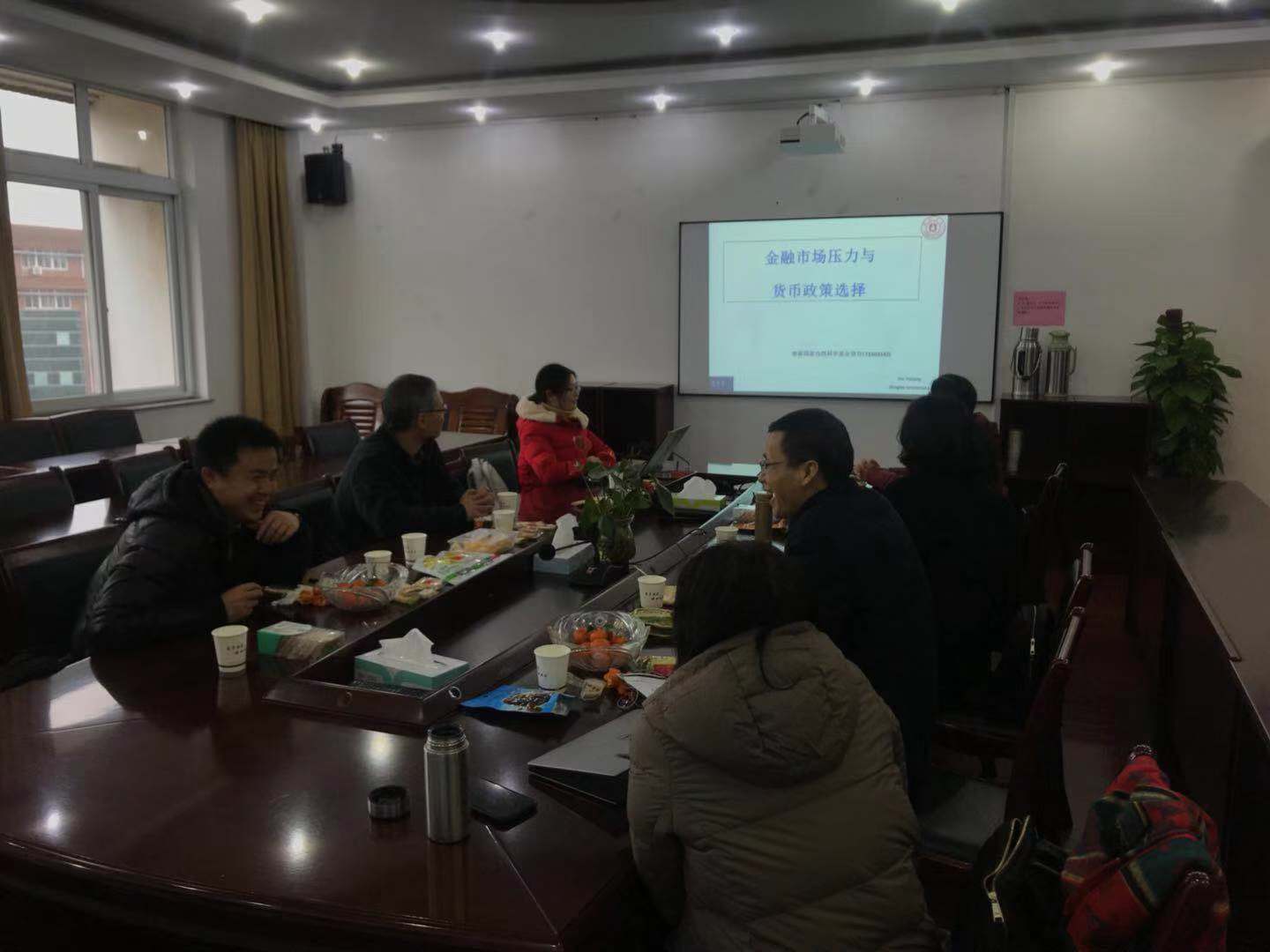 2019年1月4日下午,黄色小说 学术沙龙(2019年第1期)在11号楼412会议室举行。本期学术沙龙主讲人是黄色小说 金融发展研究所的胡育蓉博士,沙龙主题为“金融市场压力与货币政策选择”。沙龙由金融发展研究所所长张琴教授主持,金融发展研究所和数量经济研究所的老师们参加此次学术活动。
