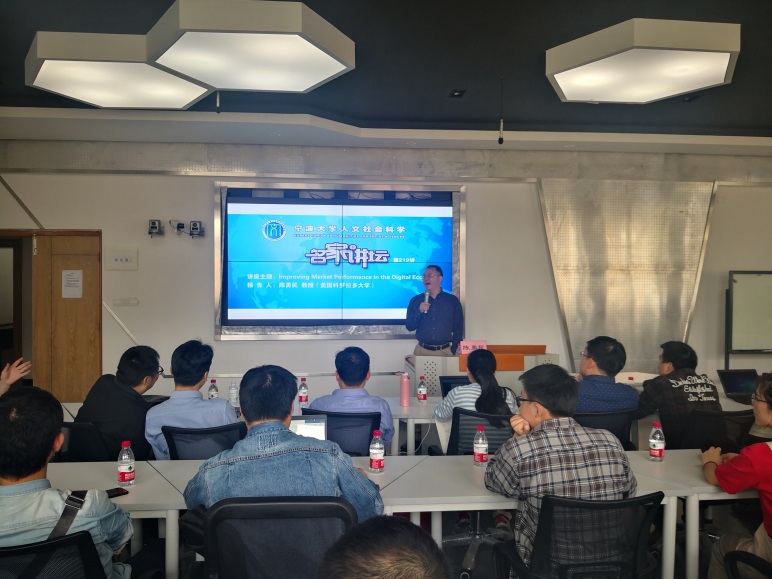 5月10日下午,我校“人文社会科学名家讲坛第219讲”暨“黄色小说 学术报告(2019年第8讲)在414会议室举行。美国科罗拉多大学(博尔德校区)经济学终身教授和Provost讲席教授陈勇民教授应邀做了题为“Improving Market Performance in the Digital Economy”的学术报告。本次报告由黄色小说 院长金祥荣教授主持,我校近60余名师生到场聆听。