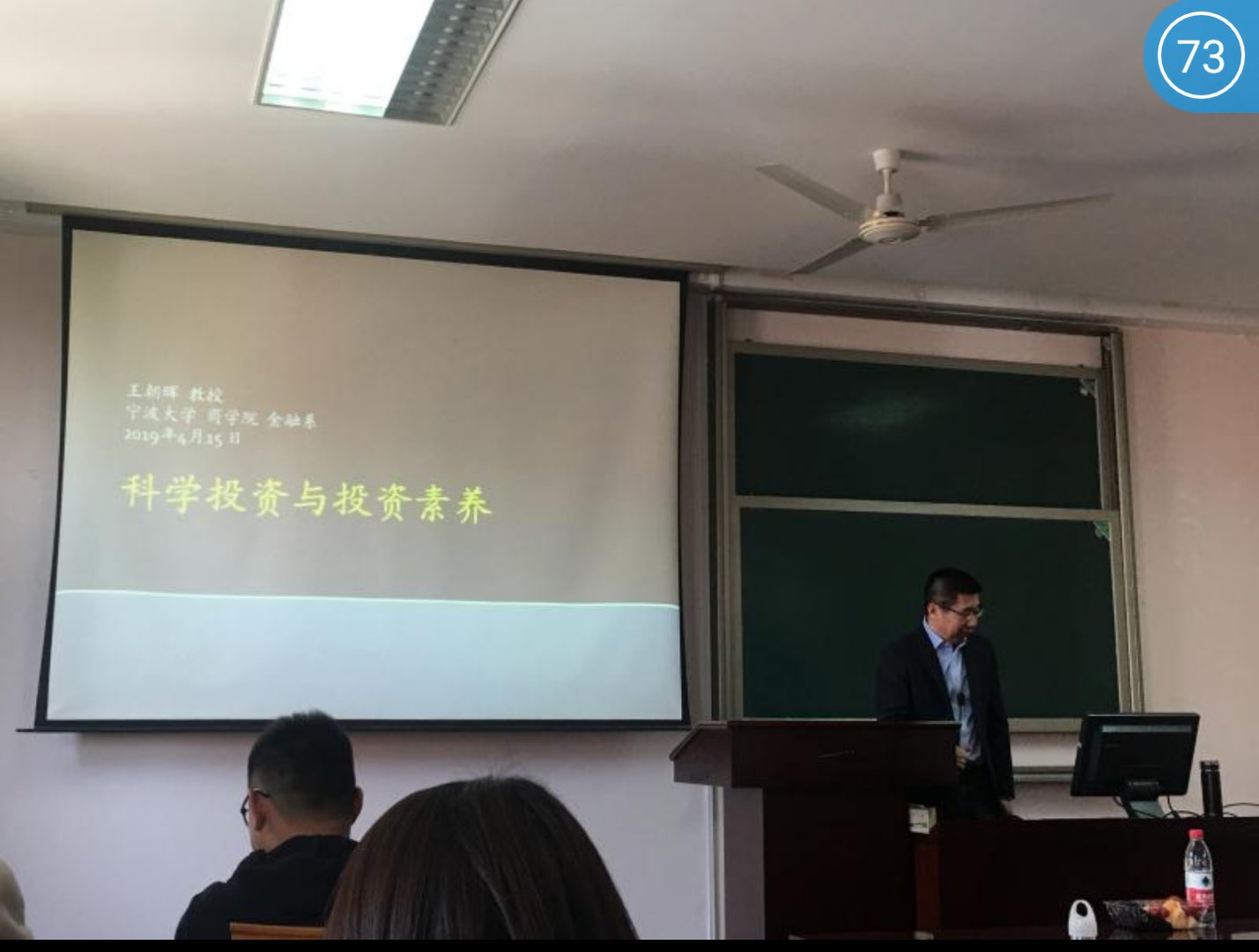 此次讲座的主题是“科学投资与投资素养”,王老师主要从如何撇开对投资的偏见以及如何做好投资两个方面向同学们做了阐述,结合现实中经常接触到的实例,用通俗易懂的方式给同学们解释了市场理论、投机投资、投资组合等投资的专业学语及理论知识。他说,投资是门学问,要学会科学的投资需要保持一个平常心。从长期来看,投资股票就是从众多投资项目中选择最优的投资品种。