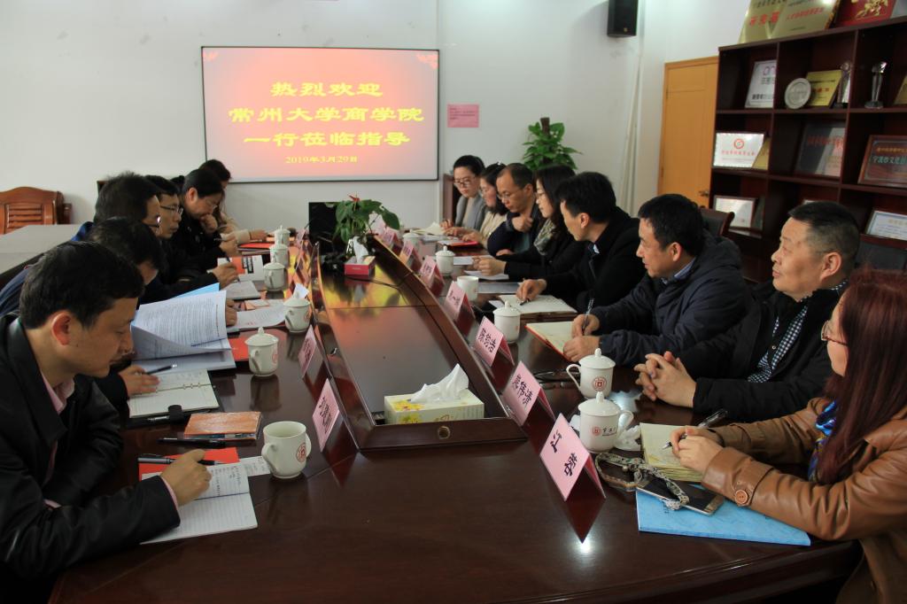3月29日下午,常州大学商学院教学副院长姜国刚一行6人来访黄色小说 ,学院分管教学工作的协理副院长朱一鸿、 国贸系主任陈钧浩、信管系主任熊伟清、金融系主任刘慧宏、国际工商管理专业负责人钱树静、教务办主任江蓉、留学生教学秘书王小西、留学生辅导员王逸娇出席交流会。