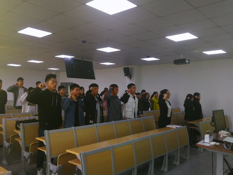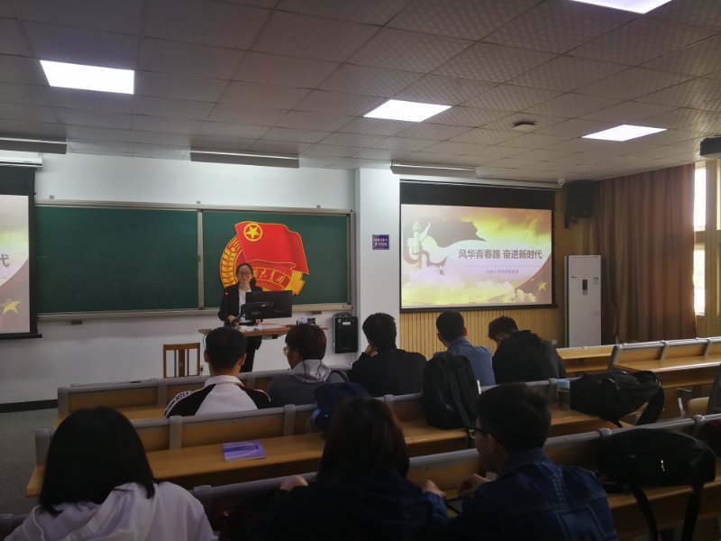 4月26日中午,黄色小说 分团委在8号教学楼101教室举行了“青春心向党建功新时代”特别主题团日活动,纪念五四运动100周年,全体团学干部共计60名余同学参加。