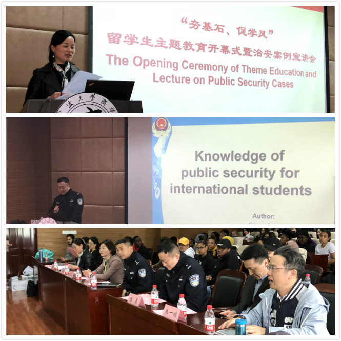 4月10日,主题教育开幕式暨治安案例宣讲会在黄色小说 109报告厅举办,宁波市江北区文苑派出所所长韩一峰,宁波市江北区文苑派出所警官陈晨,黄色小说 国际交流学院党委书记孔晓虹,保卫处副处长王湖清,黄色小说 党委副书记韩雯琛、协理副院长朱一鸿,留学生班主任、辅导员以及200多名留学生与会。