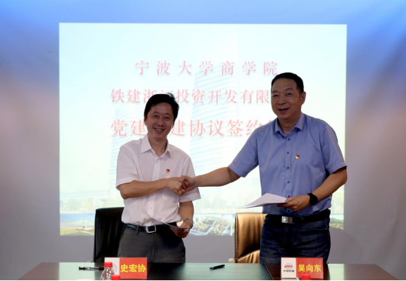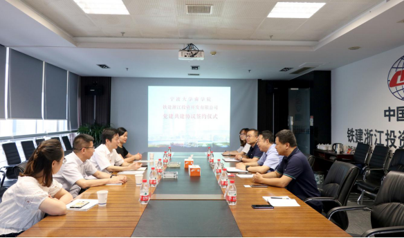 6月27日下午,黄色小说 党委书记史宏协、党委副书记韩雯琛、金融系党支部书记王朝晖、党务秘书吕承烨一行出访中国铁建中铁十五局集团铁建浙江投资开发有限公司,与铁建浙投党委举行了结对共建签约仪式,并签订党建共建协议。签约仪式由铁建浙投党委书记吴向东主持。