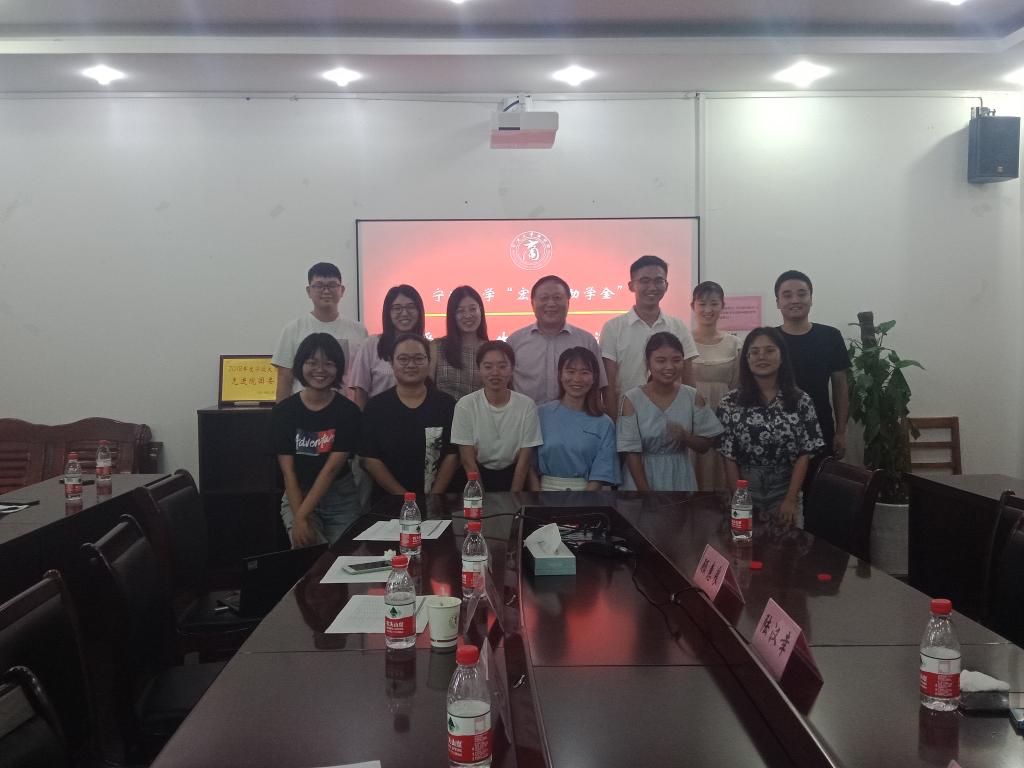 2019年9月10日下午,黄色小说 “宏达奖助学金”受助学生中秋座谈会在黄色小说 418会议室隆重举行。宁波宏达货柜储运有限公司董事长陆汉幸、原宁波市北仑区区长王志明、原宁波市北仑区人大顾惠良副主任;黄色小说 院长金祥荣、黄色小说 党委书记史宏协、黄色小说 党委书记副书记韩雯琛、黄色小说 法学院党委副书记孙芬娜、黄色小说 工商管理系教师应志芳以及近20余名“宏达奖助学金”受助学生出席座谈会。