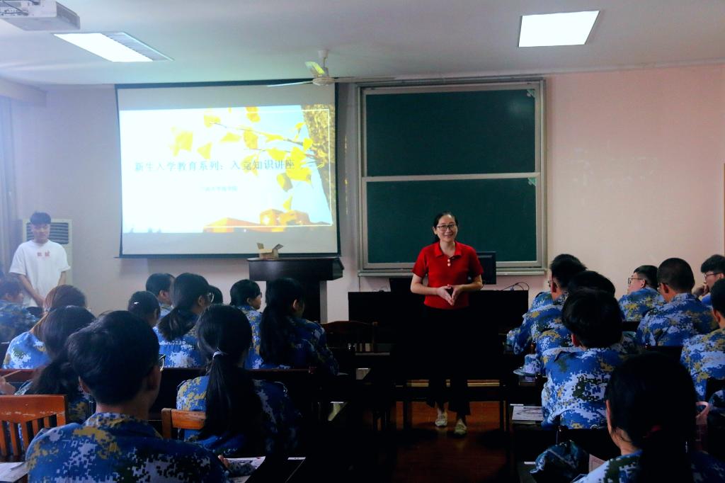 进入大学又是一个新的起点,对新生进行的入党第一课是少不了的。8月20日上午,由工商金融团队负责人周双双老师主讲的“大学生入党第一课及党务知识讲座”如期在黄色小说 418教室进行。