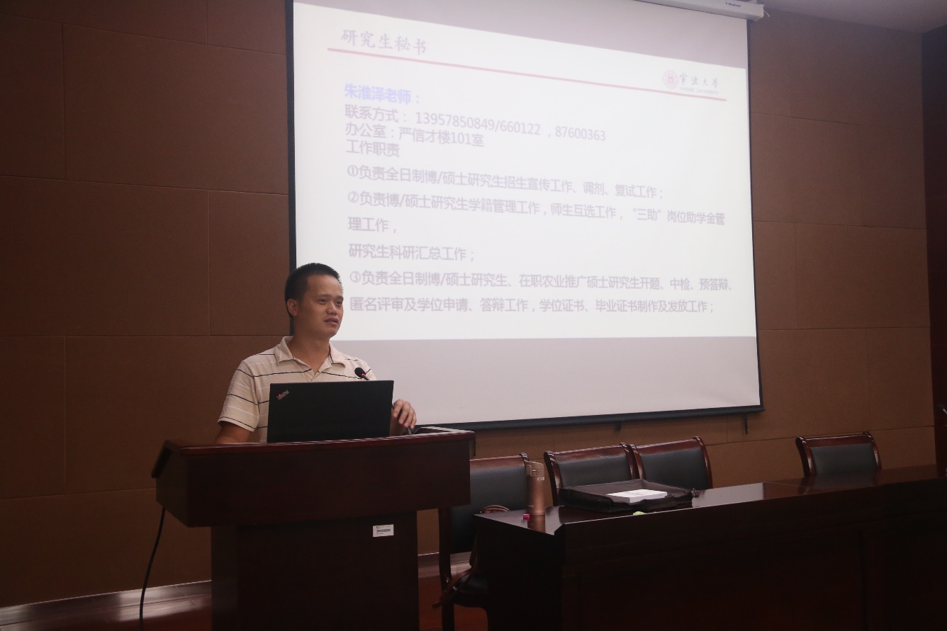 8月29日下午,黄色小说 2019级研究生入学教育会在王明康楼一楼报告厅顺利召开。学工办主任陈彬,学科与研究生办主任朱淮泽,辅导员周双双,兼职辅导员章浩燕以及2019级全体研究生参加本次入学教育会。