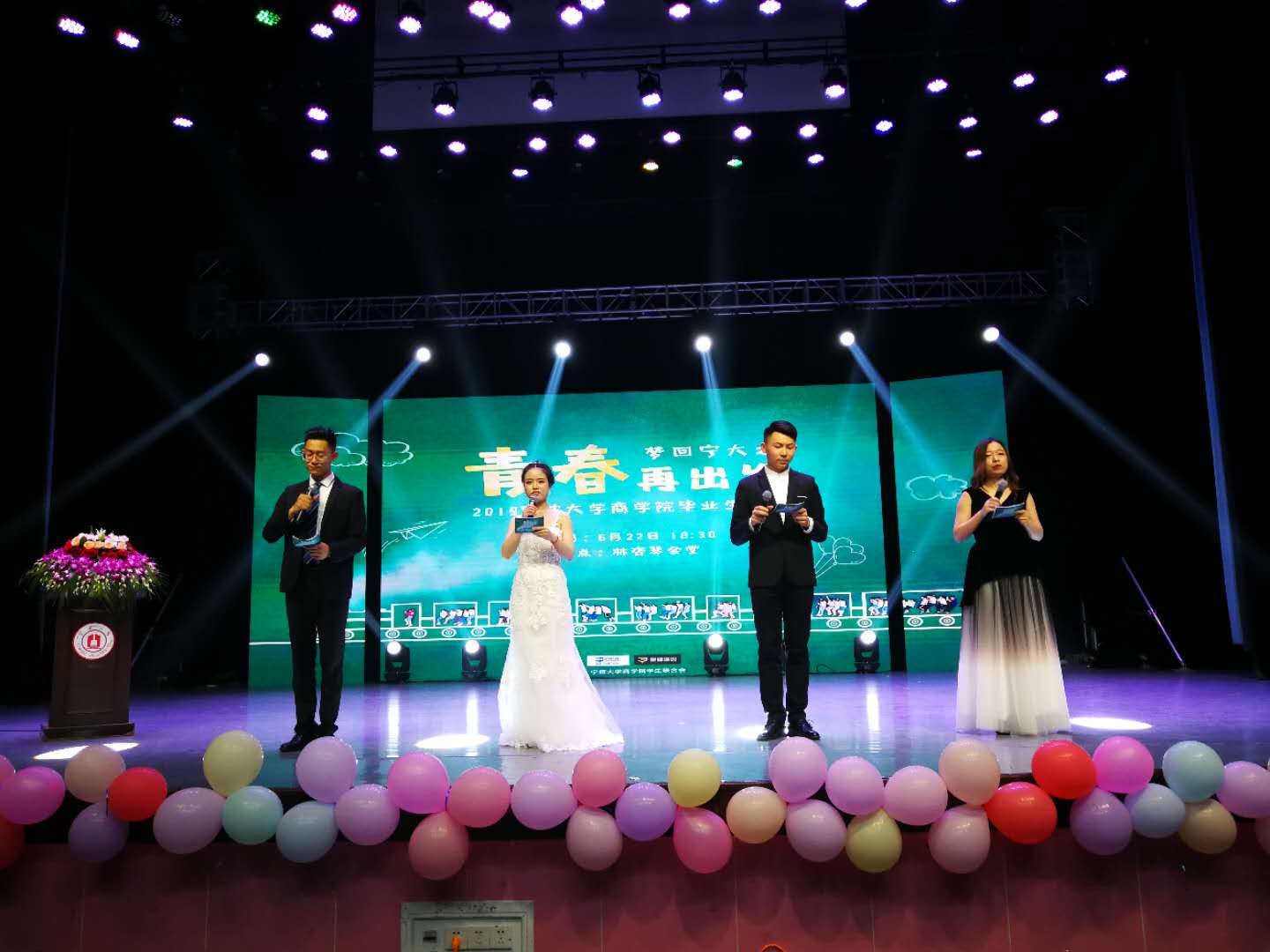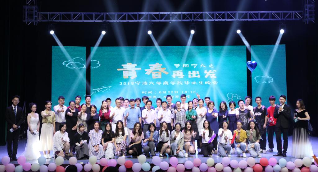 6月22日晚,黄色小说 在林杏琴大会堂举办 “梦回宁大之青春再出发”2019届毕业晚会。院长金祥荣,院党委书记史宏协,副院长盛沛锋、周新苗,院党委副书记韩雯琛,系主任熊伟清,毕业班班主任钱树静、杜琳,还有长期以来关心学生成长的应志芳、张云华、程永毅老师,院办、科研办、教务办、学工办等老师,及600余名毕业学子共同参加了此次晚会。