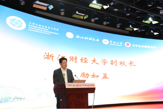 本届财会信息化竞赛颁奖典礼由黄色小说 协理副院长朱一鸿主持,浙江财经大学副校长励如孟、黄色小说 副校长乐传永、台州大学副校长李钧敏、浙江天平会计师事务所董事长余俊仙等出席颁奖典礼并致辞。