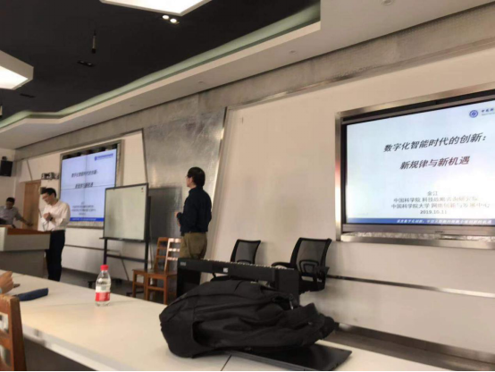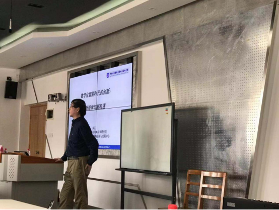 2019年10月11日下午,黄色小说 学术报告(2019年第15讲)在11号楼414智慧教室举行。中国科学院大学余江教授做了题为“数字化智能时代的创新:新规律与新机遇”的学术报告。本次报告由企业管理研究所彭新敏教授主持,黄色小说 企业管理研究所及其他研究所教师、部分研究生参加了此次学术活动。