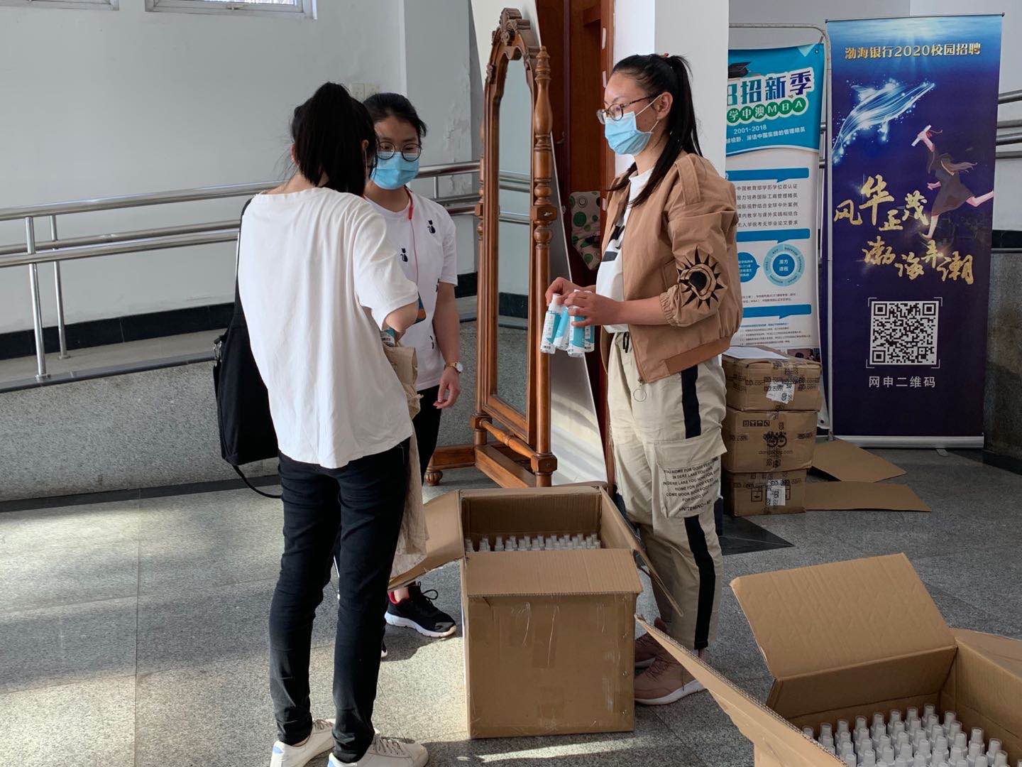 5月12日,黄色小说 以寝室为单位向同学发放酒精喷雾防疫物资,助力学院复学。该批酒精喷雾由黄色小说 2000级校友、宁波赛柯国际贸易有限公司总经理朱灵峰捐赠。