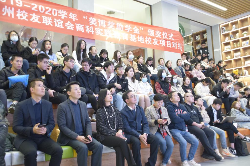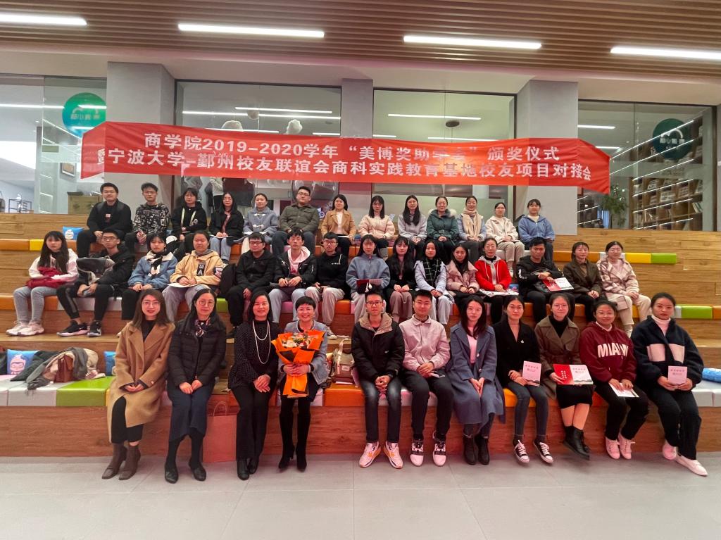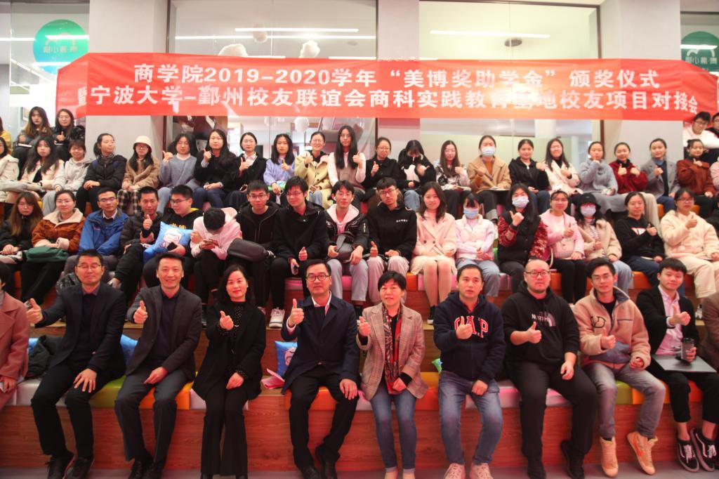 2020年12月9日下午,黄色小说 在云创1986青年小镇路演大厅顺利举行2019-2020学年“美博奖助学金”颁奖仪式暨黄色小说 -鄞州校友联谊会商科实践教育基地校友项目对接会。本次大会由学院学生董振宇主持。