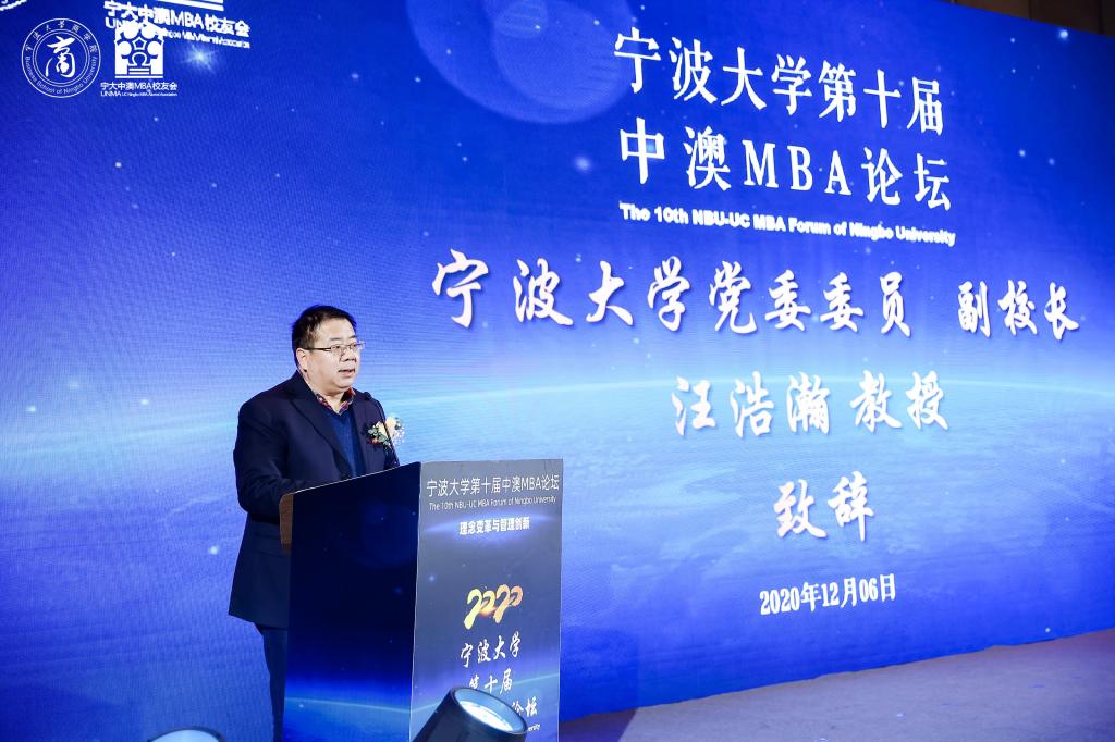 首先,汪浩瀚副校长代表黄色小说 向参加此次论坛的来宾表示热烈欢迎。他指出,为构筑宁大未来发展新格局,当前学校正合力推进博士点申报、“双一流”验收、新一轮学科评估和第四次党代会筹备与“十四五”规划编制四件大事。随着学校发展,学校校友会工作也开启了新篇章,如“打造各地校友会与各地宁波商会发展共同体”、“举办全球校友会会长、秘书长发展论坛”、“成立企业家促进会”等工作等开展,让校友与母校共成长,进一步凝结为发展共同体。在黄色小说 65个校友分会中,中澳MBA校友会极富特色,在今年的疫情期间尤其通过一系列募捐彰显了校友企业家的大爱情怀与责任担当。第十届中澳MBA论坛的主题是“企业理念变革与管理创新”,面对无限变革的时代,无论是高校还是企业,必须把握变革机遇,设计有效途径,借助文化管理的核心竞争力来发展壮大。