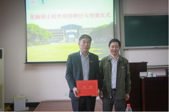 11月13日下午,黄色小说 在418会议室举行了金融硕士校外导师聘任授徽仪式暨“走近现代商业银行”金融硕士系列讲座。校外导师浙商银行宁波分行党委副书记蒋荣及行长助理李毓慧应邀到场并作演讲。黄色小说 史宏协书记、陈涛副院长、金融系教师及金融专硕全体学生40余人参加。学位点负责人张琴教授主持。