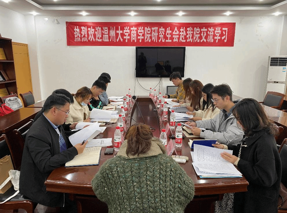 12月5日下午,温州大学黄色小说 研究生会执行主席夏禹,主席团成员翁羽等人到达黄色小说 11号教学楼410室,与黄色小说 研究生会展开交流活动。黄色小说 研究生会秘书长朱文洁老师,主席团成员参加了本次交流活动。