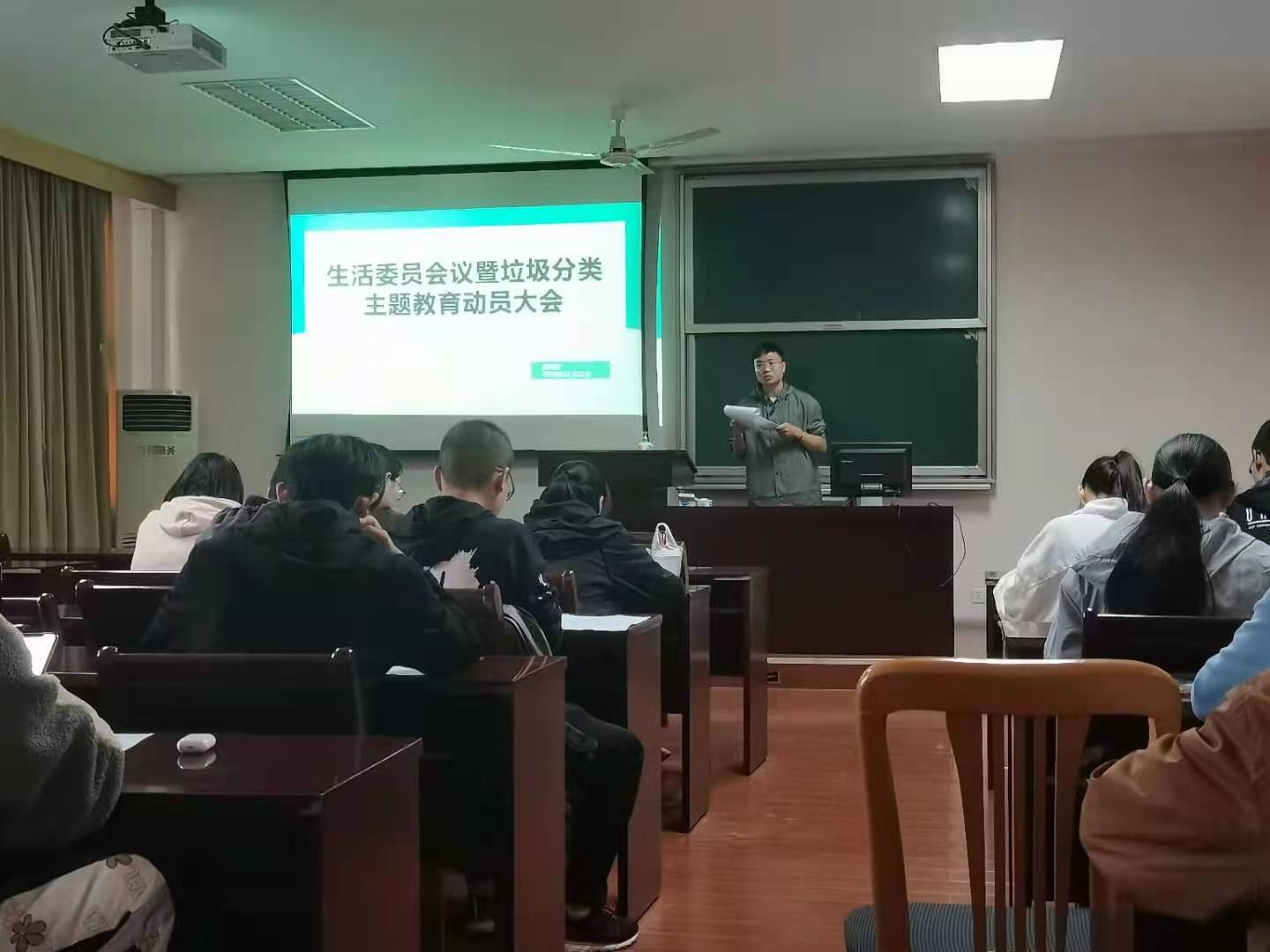 召开生活委员工作会议暨垃圾分类主题教育动员会。全体生活委员及社委会学生干部参加了此次会议。会议由学工办辅导员钟冬冬主持。