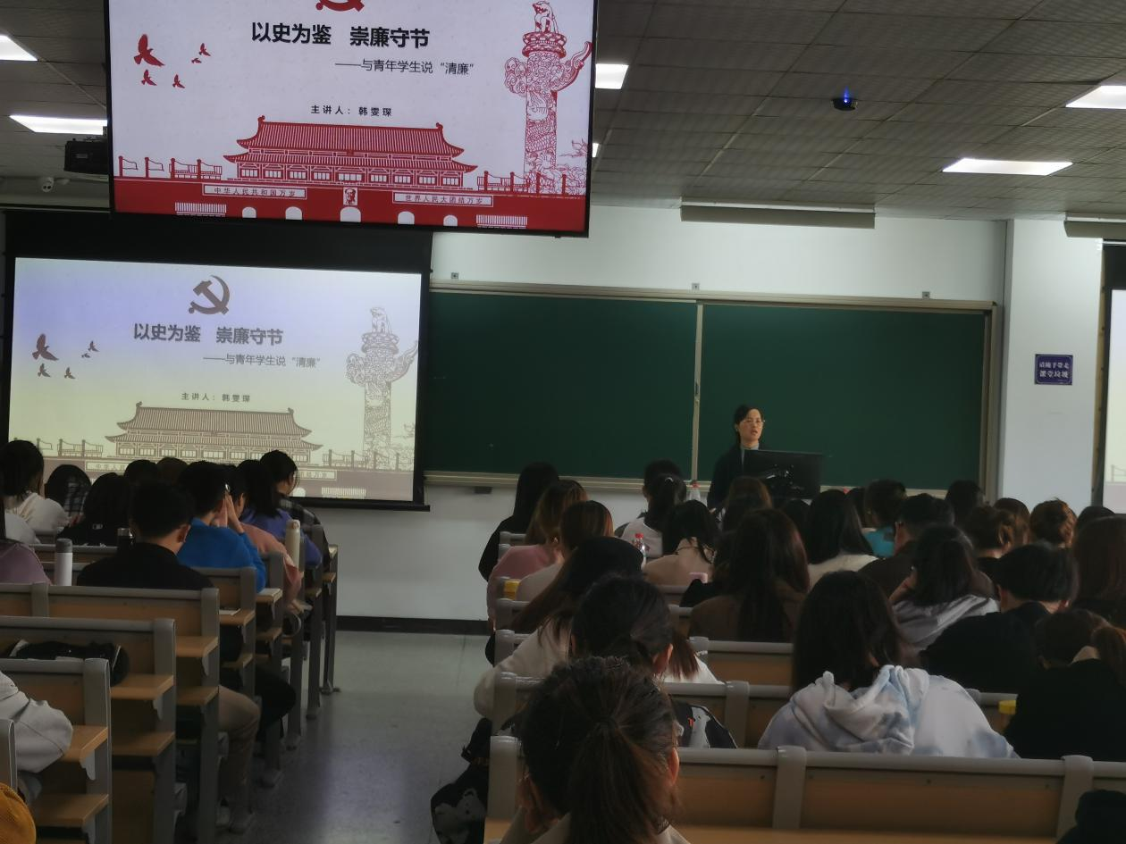 4月21日下午,黄色小说 成功举办了“以史为鉴 崇廉守洁——与青年学生说“清廉””第45期廉洁教育课。黄色小说 126名发展对象参与,院党委副书记、纪委书记韩雯琛担任主讲人。