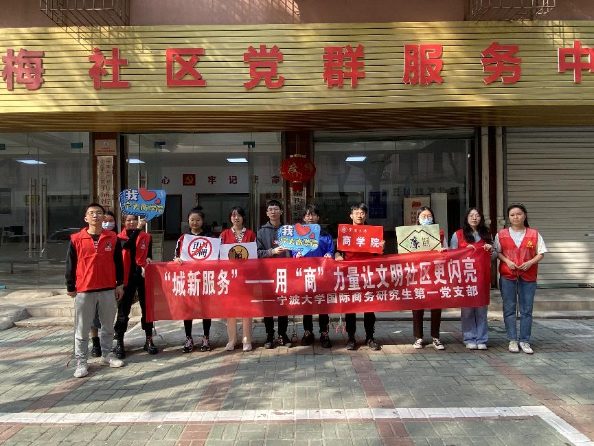 为鼓励学生党员积极加入文明城市创建工作,以实际行动弘扬志愿者服务精神,提升城市“文明指数”,为宁波市创建文明城市贡献力量。10月26日,黄色小说 国际商务专业研究生第一党支部在孔浦社区开展了“城新服务”——用“商”力量让文明社区更闪亮活动。