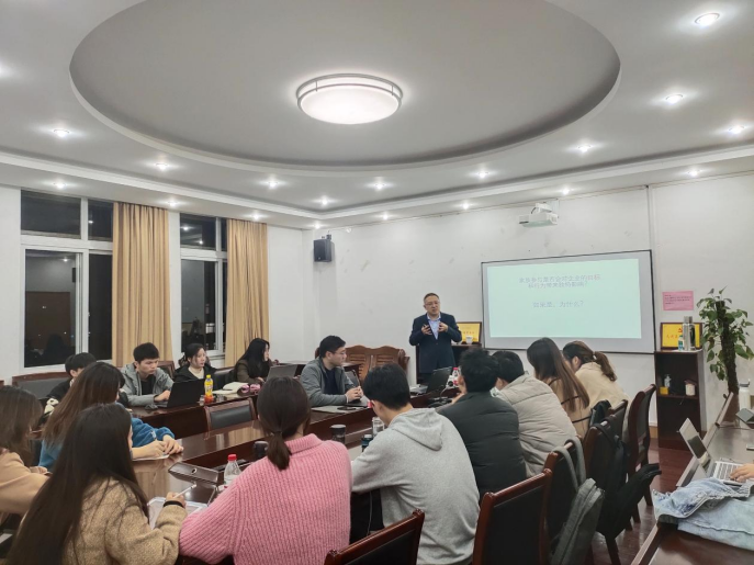 2021年11月18日晚上在11号楼412会议室,黄色小说 学术讲座邀请了宁波诺丁汉大学周是今(Steven Zhou)副教授做了题为“由个人到天下——社会情感财富(Social and Emotional Wealth, SEW)理论重构”的报告,工商管理一级学科带头人彭新敏教授主持。
