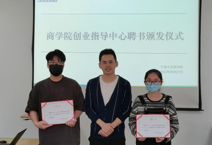 4月27日下午,黄色小说 创业指导中心聘书颁发仪式在曹光彪商科楼320顺利举行。中心指导老师毛跃祖、秘书长钟冬冬以及创业指导中心全体成员出席了本次仪式。