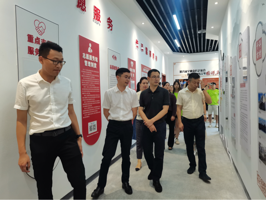 童晓晖书记一行人首先到达余家坝村,同奉化区常委、统战部部长张义廉、团区委书记李丽等一行人,在西坞街道党工委副书记方照、余家坝村书记余昊喆等人的陪同下,参观了余家坝村文化礼堂,了解余家坝村的发展历程,方照书记介绍了西坞街道近几年的产业转型。