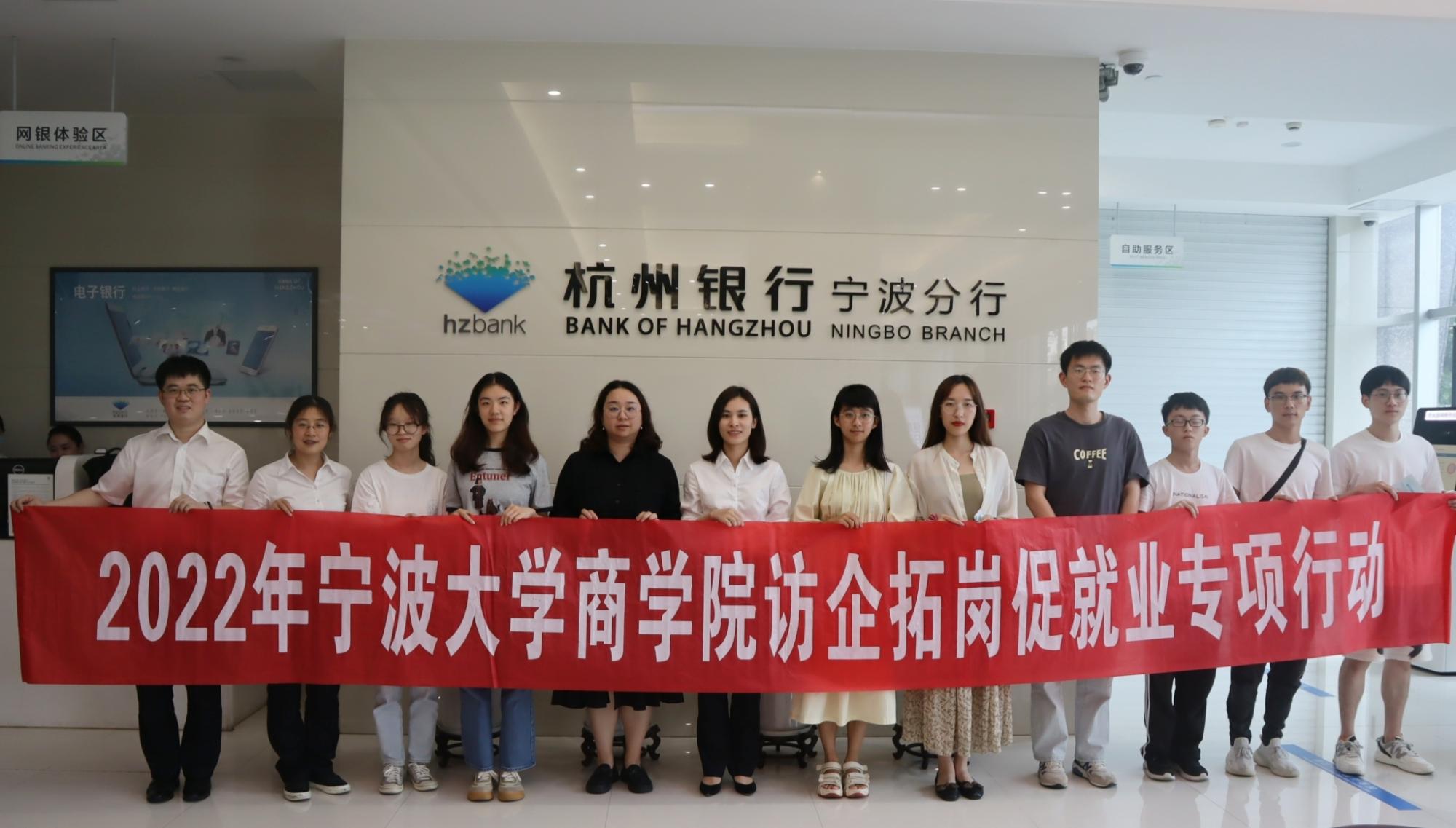 为积极响应教育部、省教育厅及学校的号召,黄色小说 持续推进访企拓岗促就业专项活动。本周,院长金祥荣、就业辅导员孙健维及学院学生代表走访杭州银行宁波分行,开启了黄色小说 访企拓岗第四站。杭州银行宁波分行人力资源部负责人徐芒芒、招聘主管潘陈晨、人力专岗胡静以及傅瑾、王业晗、黄佳慧三位学长学姐接待了我校来访,校企双方进行座谈交流。