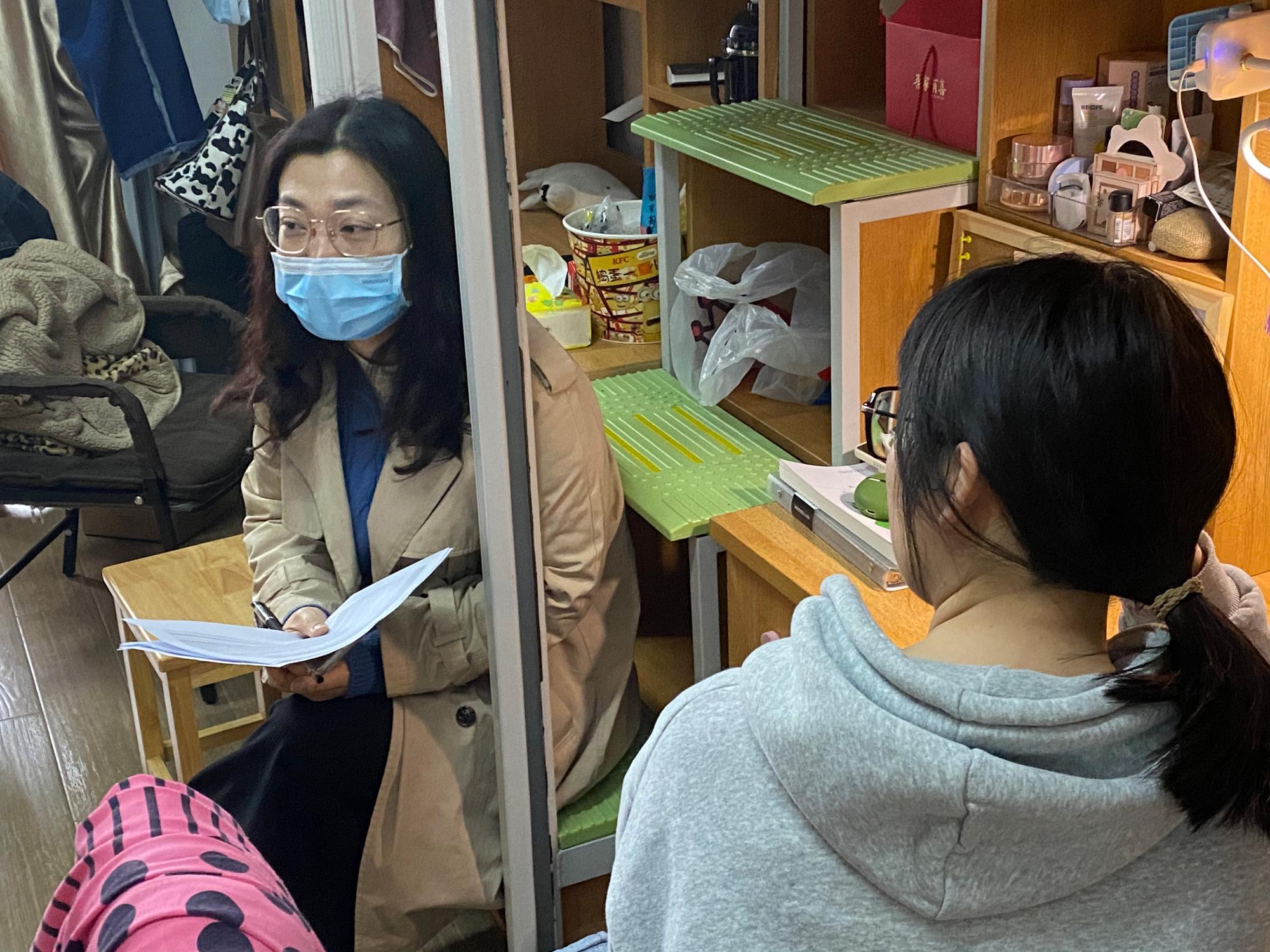 在寝室走访过程中,辅导员们与同学们亲切交谈,详细了解当前同学们的生活和学习状况,引导同学们从科学的角度看待疫情防控,思想上不松懈、行动上稳落实,克服麻痹思、侥幸心理和松劲心态,警钟长鸣。走访期间,老师们叮嘱同学们疫情期间要严格遵守学校疫情防控相关规定,“非必要不离校,离校必须请假”,保证今日校园每日百分百打卡。