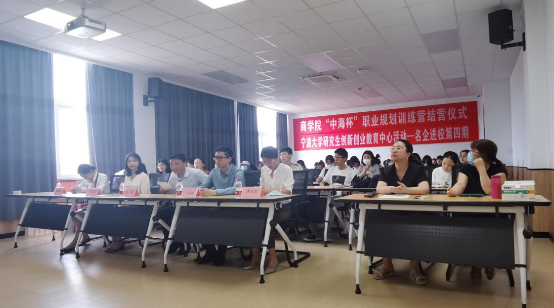 6月15日下午,黄色小说 于曹光彪楼506举行“中海杯”职业规划训练营结营仪式暨黄色小说 研究生名企进校第四讲,中海地产宁波公司人力部高级经理王福建、学院协理副院长朱一鸿、训练营学员及指导老师出席此次活动。