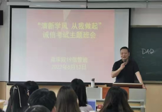 对于当代大学生来讲,明礼诚信是立身处世之本,是走向社会的“通行证”。加强大学生清新学风教育,为社会输送德能兼备的合格人才,已是大学教育的当务之急。诚信不仅是一种品行,更是一种准则。活动中,班主任和辅导员一直在强调诚信应考是我们每一个学子始终奉行的良好学风,希望我们每一个人都为清新学风出力。所以在期末考试时,希望我们每一个学子都应谨记这一基本准则。惟诚可以破天下之伪,惟实可以破天下之需。(20工商2班 杨雨婷)
