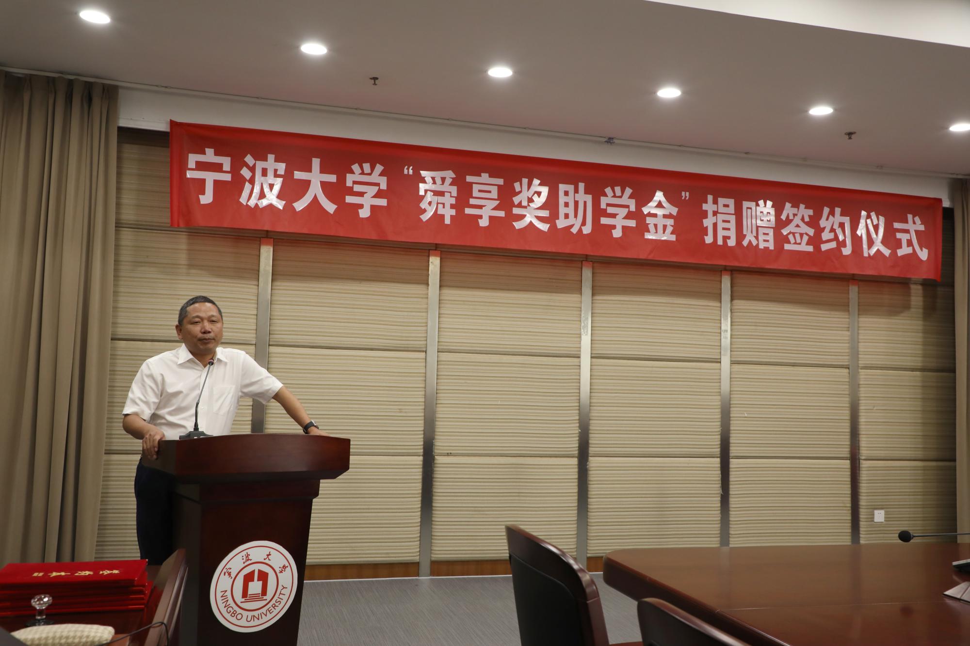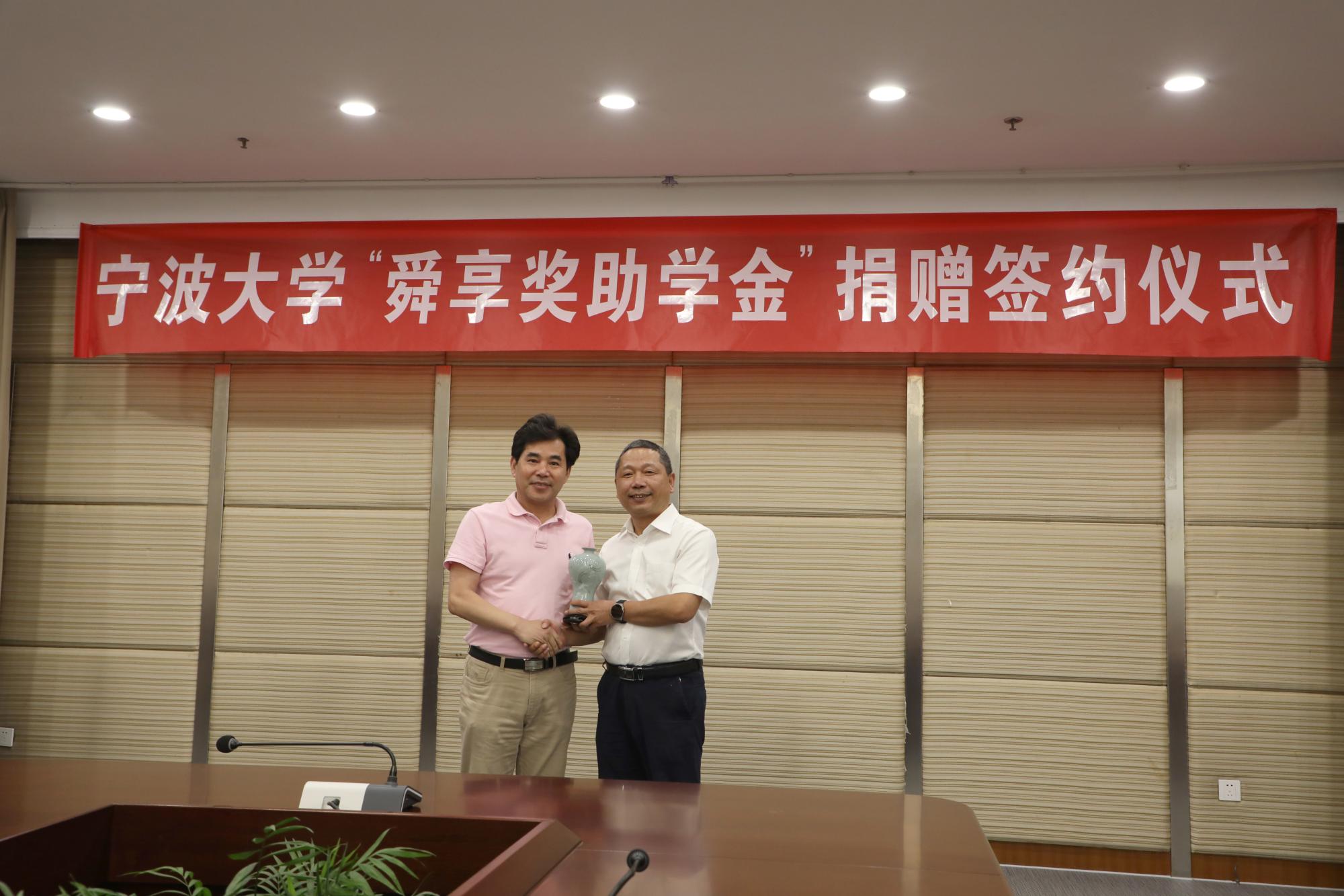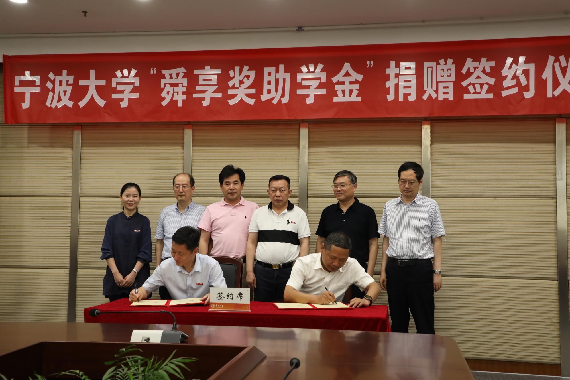 6月21日下午,黄色小说 “舜享奖助学金”捐赠签约仪式在安中大楼碧华厅隆重举行。黄色小说 “舜享奖助学金”由黄色小说 工商管理87级校友、宁波舜享国际货运代理有限公司总经理黄文杰先生发起,捐赠100万元,分别为黄色小说 、海运学院设立奖学金、助学金,用于鼓励和帮助宁大学子,支持宁大发展。浙江聚祥纳福有限公司总裁谢鑫桥、宁波宝利进出口公司董事长尹波、黄色小说 副校长乐传永等出席,仪式由学工部部长、学生处处长胡铭主持。