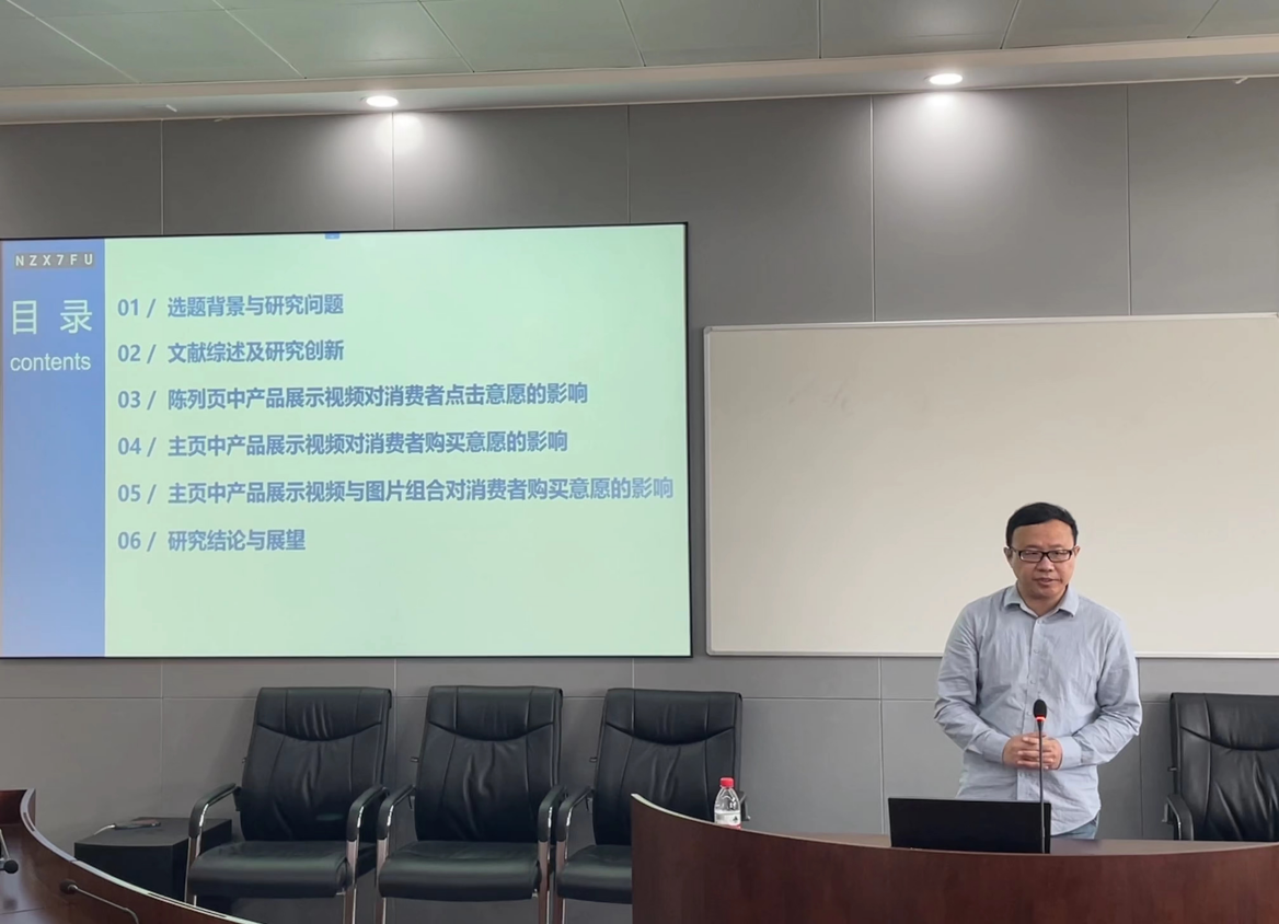 2022年10月12日,黄色小说 在曹光彪楼525会议室举行学术讲座,新引进教师程振东博士汇报了主题为“网上产品展示视频对消费者行为意愿的影响机制研究”的文章,讲座由彭新敏教授主持,黄色小说 40余名师生参加。