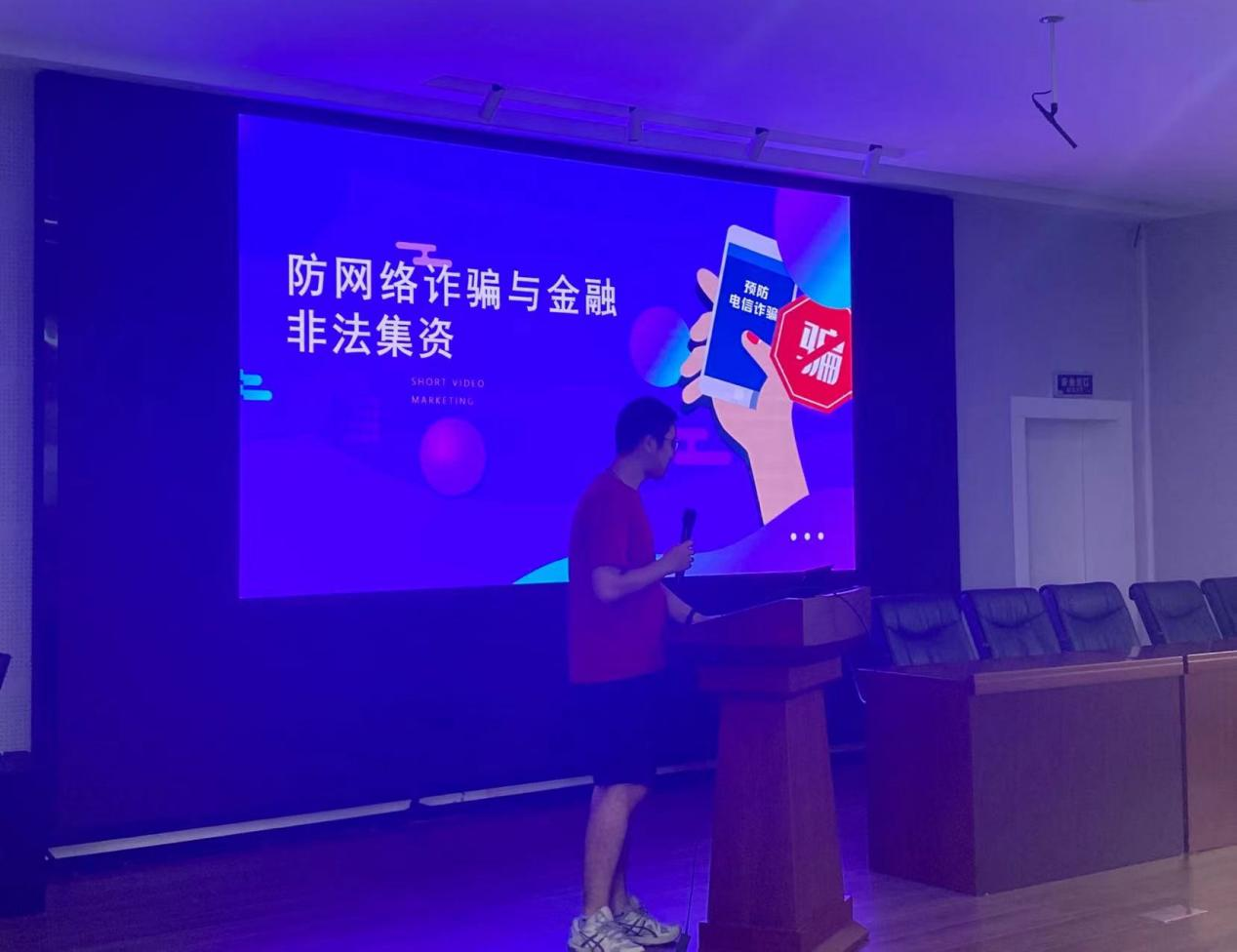 为提高研究生新生的安全意识,黄色小说 于9月2日下午在黄色小说 报告厅开展了研究生新生防诈讲座,本次讲座由金融专硕研究生党支部成员李元鑫主讲。