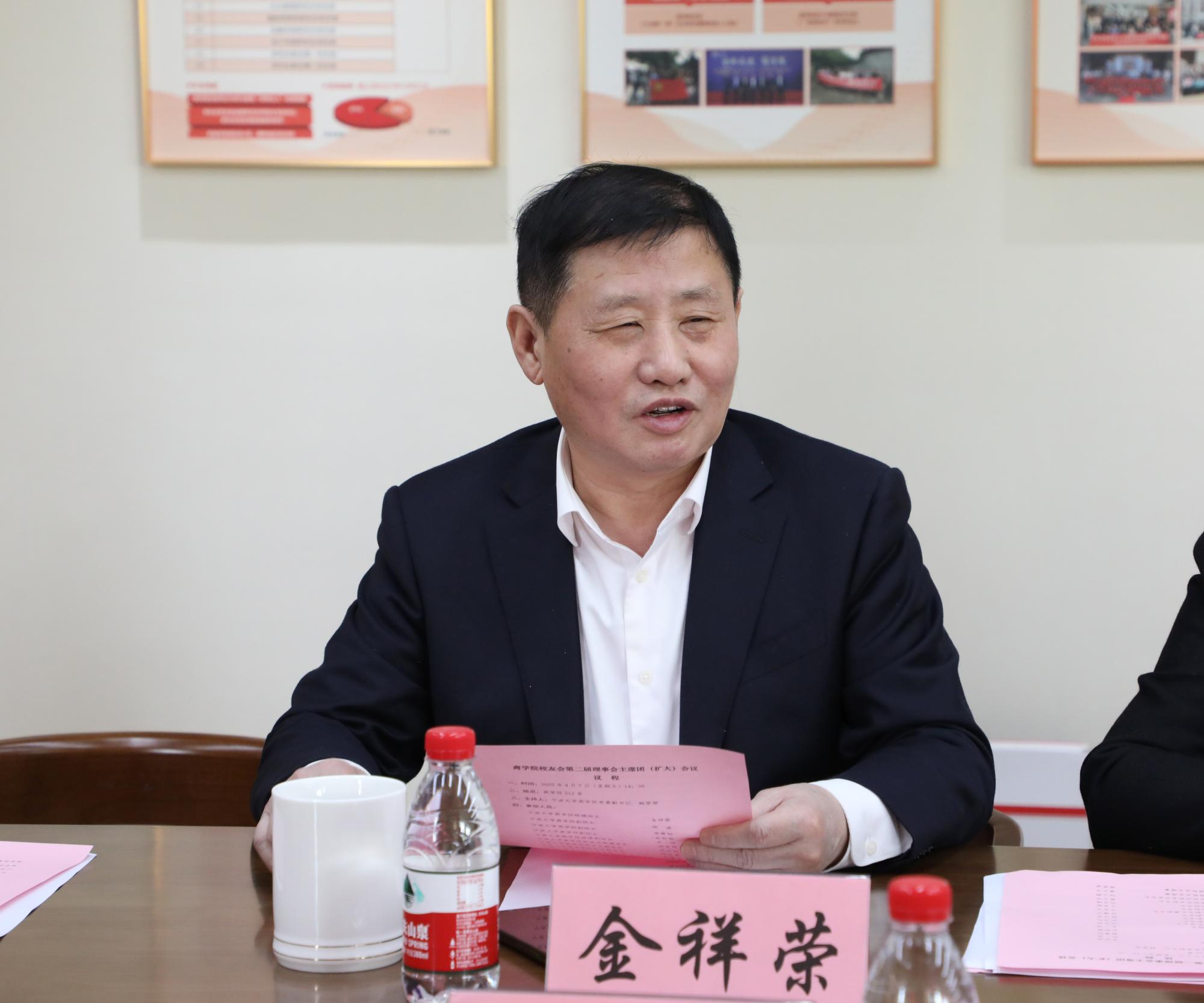 最后,会长金祥荣发表讲话,他首先感谢了大家对学校校友工作的支持,随后对校友会成员的建议进行了总结和归纳并予以答复,要把校友会的活动作为主体活动,要正确并且充分地认识校友会的性质,发挥校友间纯洁可信的同学情的作用,要加强校友间学习的交流,培养学生的创新精神,提出校友之间要做到“互助可互惠”的观点。校友会要扮演好桥梁纽带的角色,成为母校与校友间的信使,要充分利用校友会资源,为校友的发展提供帮助,带动广大校友常回母校观新貌,常见师友话家常,提升校友的归属感和凝聚力。