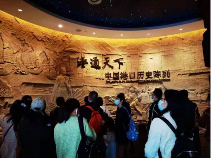 校车一大早从学校出发直奔目的地中国港口博物馆。中国港口博物馆位于宁波北仑区梅山湾新城,是国家一级博物馆和国家4A级景区。在讲解员的带领下,大家依次参观了各个展馆,了解了我国港口从远古、古代、近代和现代四个历史阶段的发展变化。展厅展出了许多珍贵文物、航海船模和图片历史资料,大家看了连连赞叹。伴随着讲解员的细致讲解,大家更深入了解了中国港口海洋文化的深厚历史,开阔了视野,提升了教工们对宁波这个港口城市的认识。
