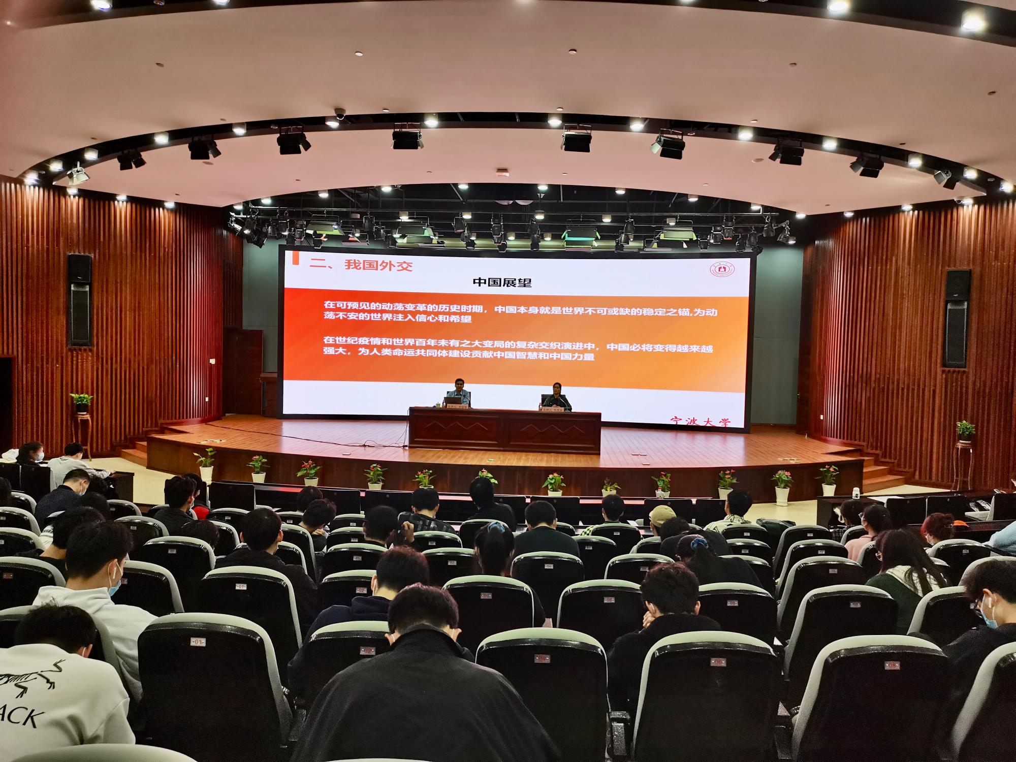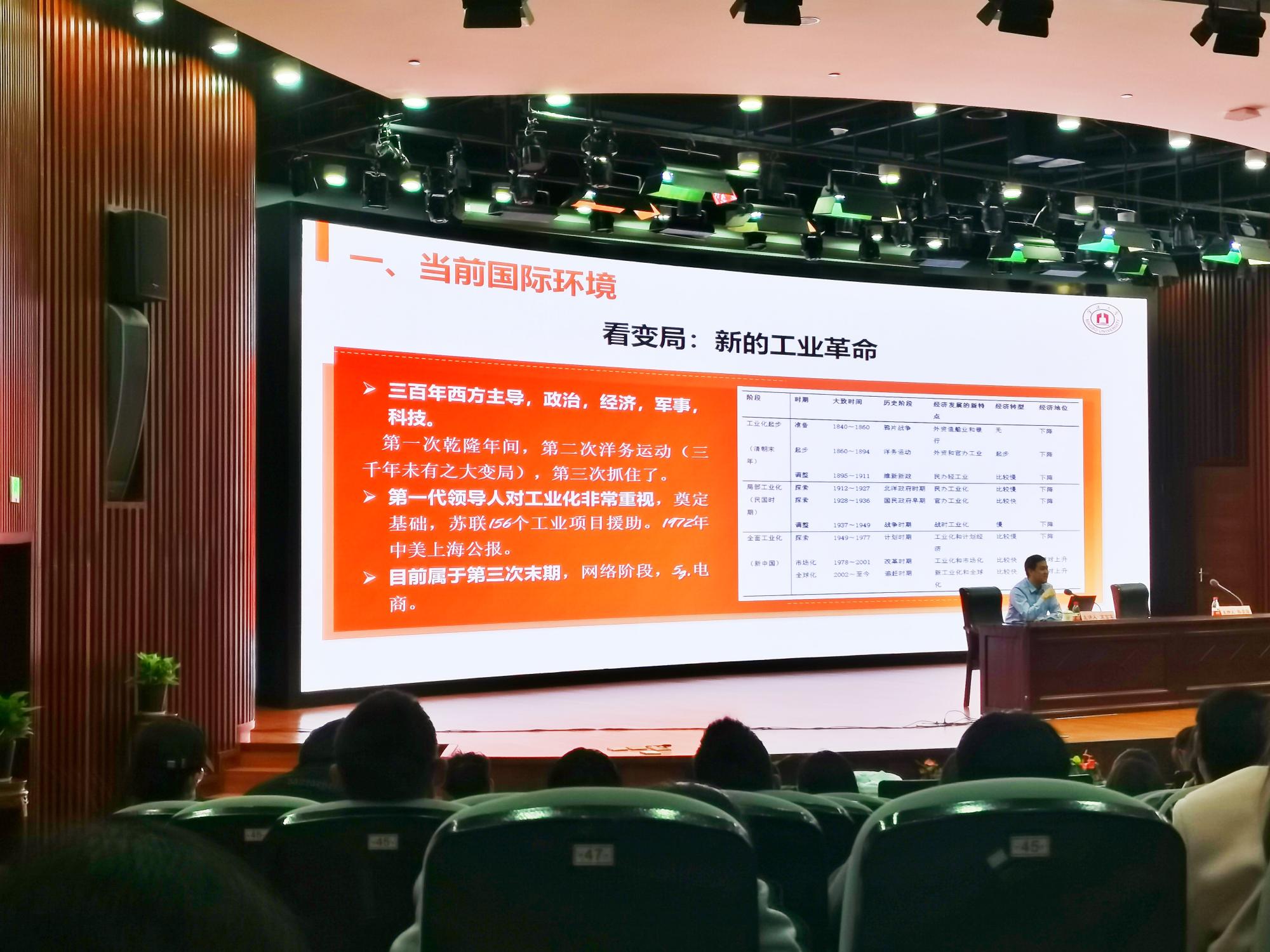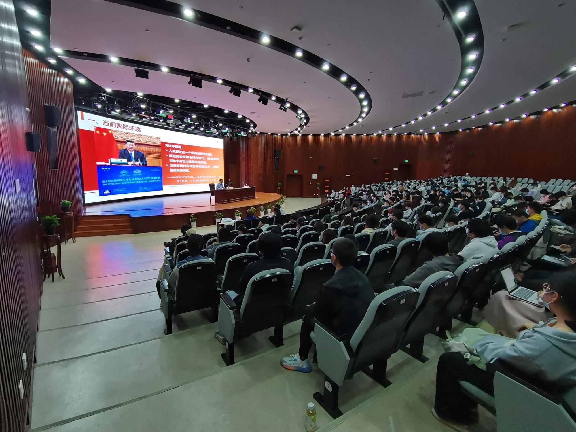 11月25日下午,副校级领导宋富军教授为黄色小说 师生主讲“形势与政策”课,主题为“当前国际环境和我国外交”,共260余名师生参加,黄色小说 党委副书记韩雯琛主持。