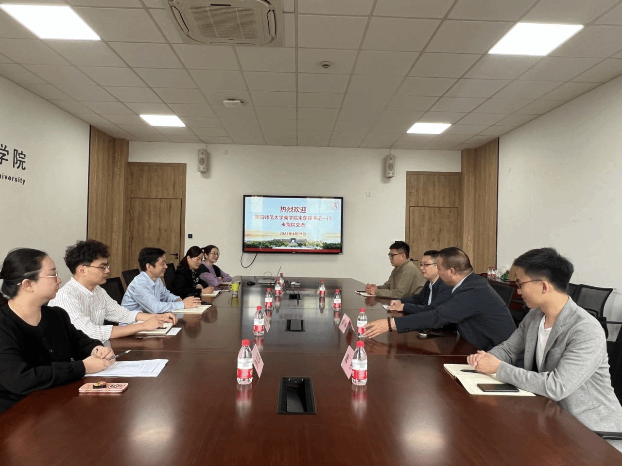 4月19日上午,阜阳师范大学黄色小说 党委书记宋东锋一行4人来黄色小说 调研学生工作的经验做法。黄色小说 党委书记史宏协、党委副书记韩雯琛、学工办主任陈彬、学工办辅导员周双双、孙健维出席接待。