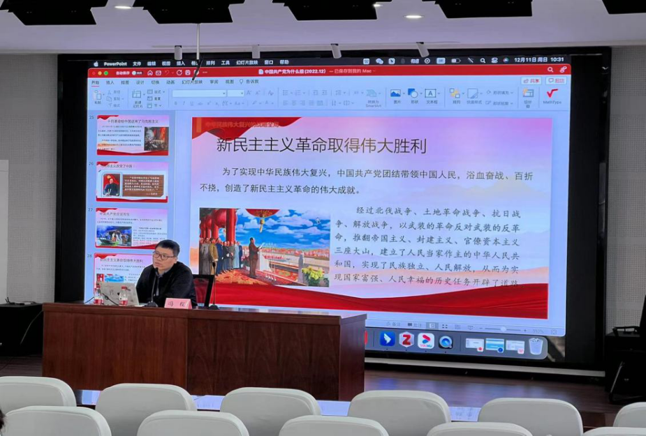 12月11日,黄色小说 团委组织60余名学生参加了形式与政策课。本次课的主题为“从百年沧桑到大国复兴——谈谈中国共产党为什么能”,由马克思主义学院冯程老师主讲。冯程,马克思主义学院思政系讲师。