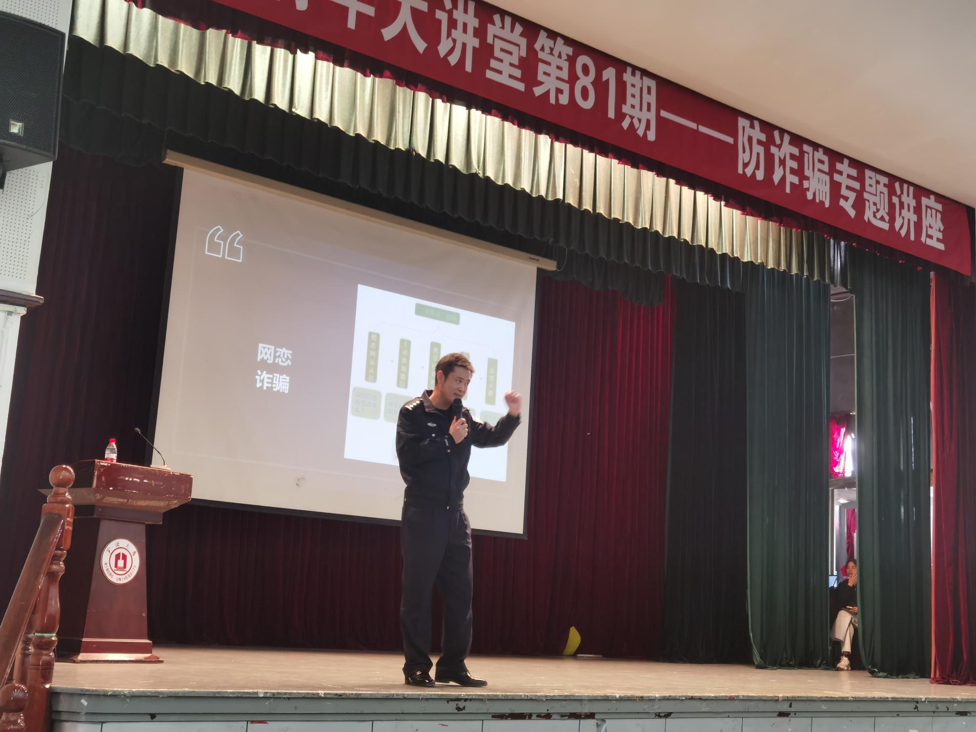 4月12日,黄色小说 于锦绣小剧场开展商院青年大讲堂第81期防诈专题讲座,本次活动由庄市派出所杨延飞警官主讲,黄色小说 二百余名学生参加本次活动。